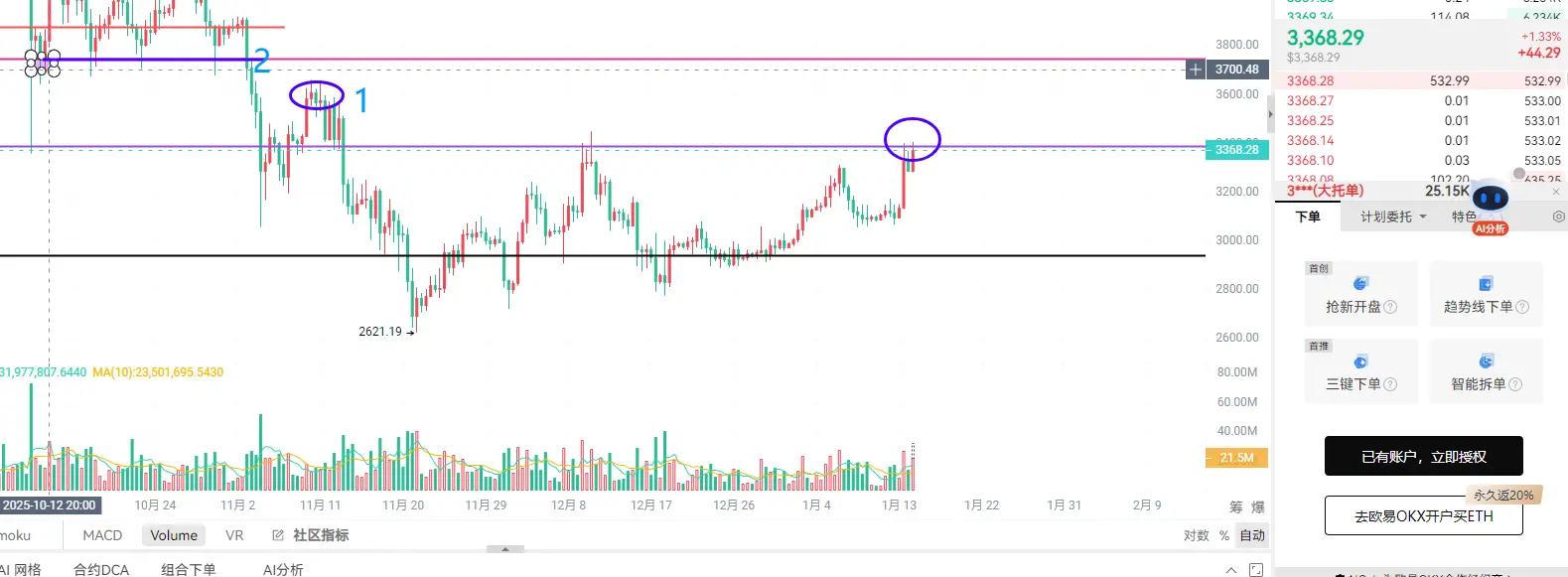 ETH: من خلال نظرتنا الحالية على السوق، فإن قوة الاختراق لا تزال أضعف مقارنة بالبيتكوين، حاليًا يقف عند مستوى ضغط بين 3380 و3400، وعلى الهيكل، طالما لم يتدهور، فإن الهدف التالي هو بين 3580 و3750، وكل مرة يختبر فيها السعر الدعم، طالما لم يكسر المنطقة، على الرغم من أن قوة الاختراق أضعف من البيتكوين، إلا أن المشاعر ستظل تتأثر به. في عملياتنا، نعمل فقط وفقًا للاتجاه، فهذه هي الحالة النموذجية لاختراق السوق الهيكلي، حيث يكون الاختراق مهمًا عندما يتركز ضغط المراكز المجمعة قبل الاختراق، ثم يتم دفع السعر بقوة، ويعود للتراجع بعد ذلك لامتصاص الزخم، الآن، لا نركز على القمم السابقة، بل نراقب منطقة تجميع المراكز قبل الاختراق، وإذا لم يتم كسرها، فهذه ليست نهاية، بل فرصة للانضمام إلى الموجة التالية.
