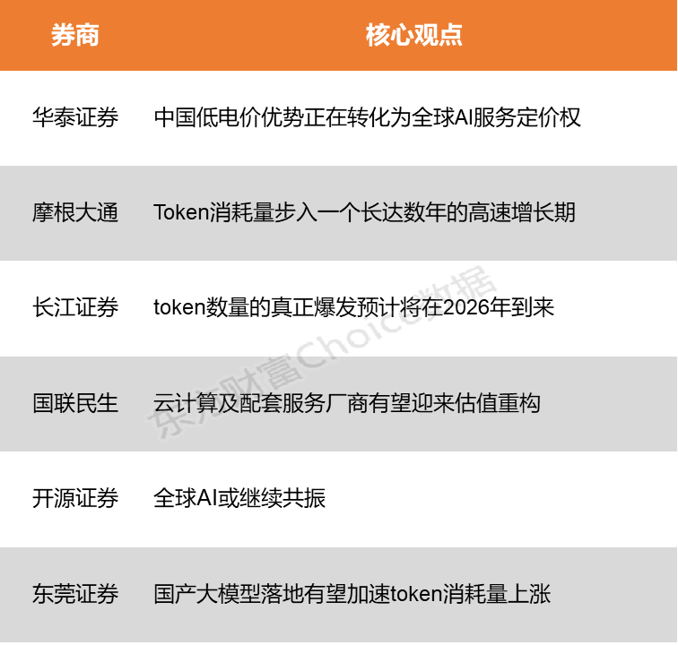مع تزايد الطلب على الرموز بسرعة، تنتقل موجة ارتفاع الأسعار تدريجيًا من القطاع العلوي إلى وحدات المعالجة المركزية (CPU) وخدمات السحابة، حيث بدأت شركات الحوسبة السحابية الرائدة عالميًا مثل AWS في رفع الأسعار، مما قد يؤدي إلى إعادة تقييم الشركات العاملة في هذا المجال، مع التركيز على: 1) الحوسبة السحابية: Alibaba، Kingsoft Cloud، UCloud، Beijing Online، Sangfor، Hongjing Technology، Shunwang Technology، Wangsu Technology، QingCloud وغيرها؛ 2) وحدات المعالجة المركزية: Hygon، Great Wall، Loongson، Hesong New Materials؛ 3) قواعد البيانات: HeteroDB، Dameng Data، Massive Data، Taiji Holdings، SuperMap Software، Tuirusi وغيرها.
