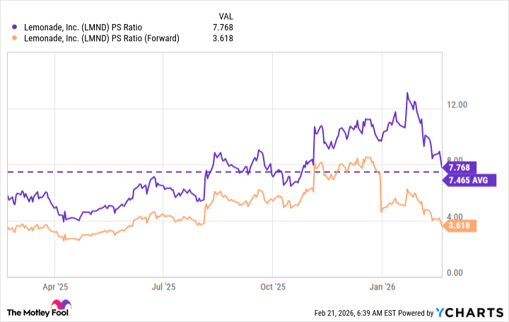 وصل معدل السعر إلى المبيعات (P/S) لشركة ليمونيد إلى ذروته عند حوالي 13 العام الماضي، وهو أعلى مستوى خلال ثلاث سنوات. ومع ذلك، فإن انخفاض السهم بنسبة 24% في 2026، إلى جانب نمو الإيرادات المتسارع للشركة، دفع معدل P/S إلى 7.7، وهو قريب من متوسطه خلال 12 شهرًا الماضية.
