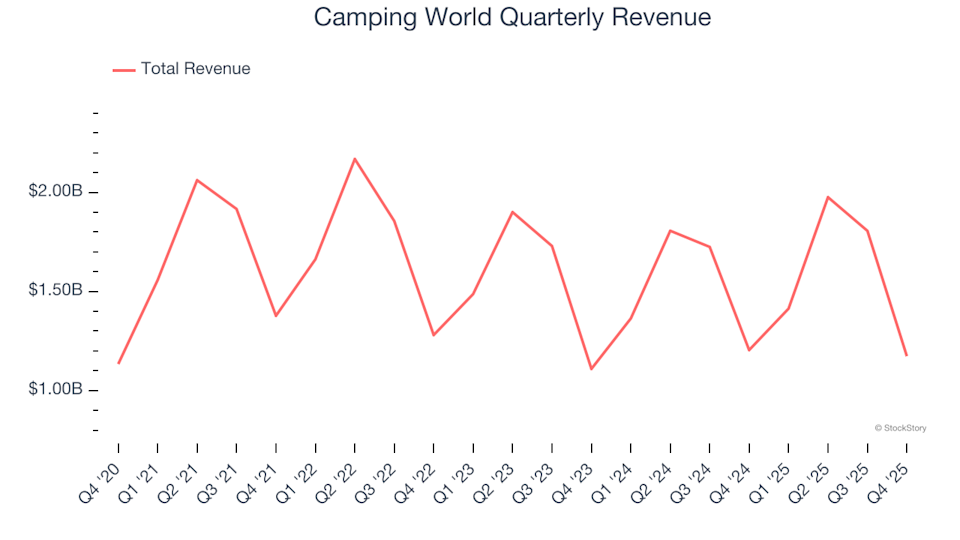 تقرير شركة كامبينج وورلد (NYSE:CWH) للربع الرابع من عام 2025 أظهر نتائج تفوق توقعات السوق من حيث الإيرادات، لكن المبيعات انخفضت بنسبة 2.6% على أساس سنوي لتصل إلى 1.17 مليار دولار. وخسارتها غير المعدلة (غير GAAP) كانت 0.73 دولار للسهم، أي أقل بنسبة 53.9% من تقديرات المحللين.