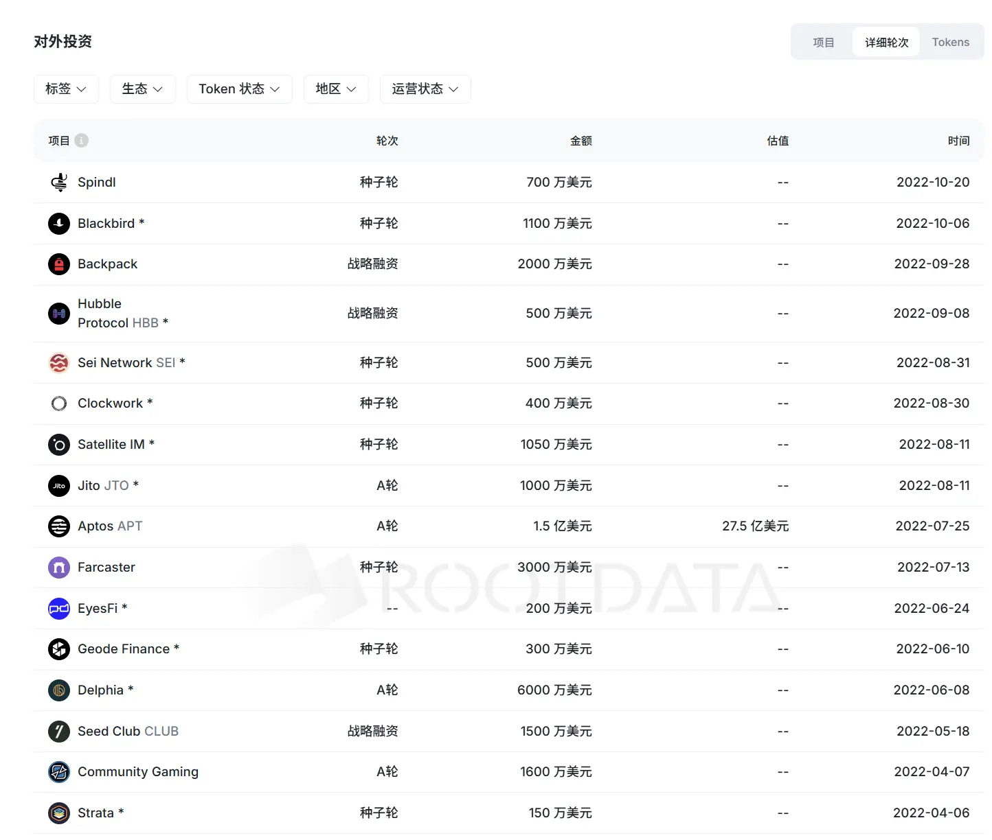 تاريخ جولات استثمار Multicoin Capital المصدر: RootData