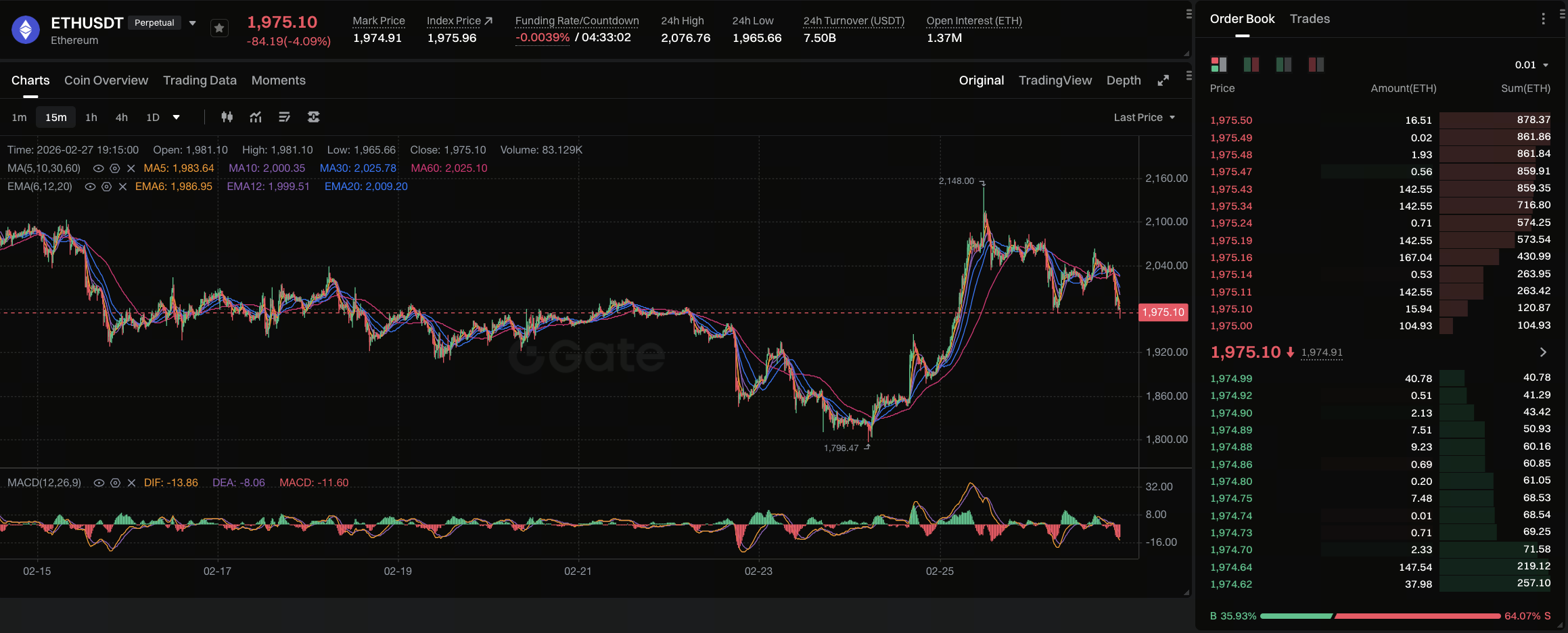 Graphique : https://www.gate.com/futures/USDT/ETH_USDT