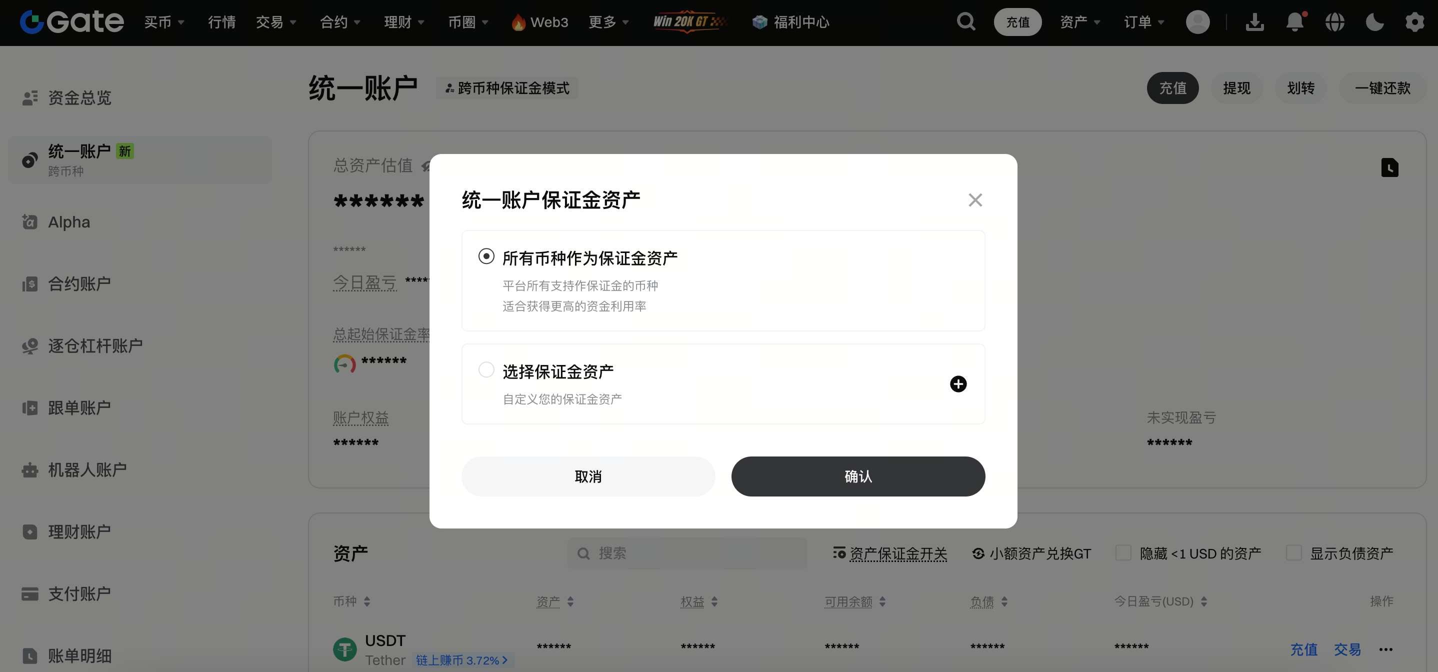 Mode Margin Multi-Mata Uang juga mendukung penyesuaian aset mana saja yang digunakan sebagai margin. Jika Anda tidak ingin semua aset mata uang digunakan sebagai margin, Anda dapat dengan bebas memilih mata uang tertentu untuk disertakan.