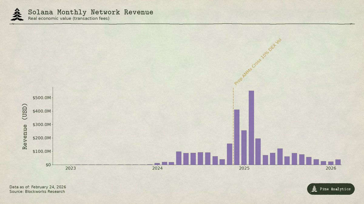 Pola yang sama, mekanisme berbeda. Pendapatan biaya Solana berasal dari MEV yang diekstraksi selama fase awal yang kacau dari meta perdagangan baru. Ketika AMM proprietary memperbaiki eksekusi dan Hyperliquid menyerap aliran pesanan yang bisa diekstraksi, margin tertekan. L1 menangkap nilai besar selama hiruk-pikuk, namun pasar sudah membangun alat untuk memastikan ekstraksi tersebut tidak berkelanjutan.