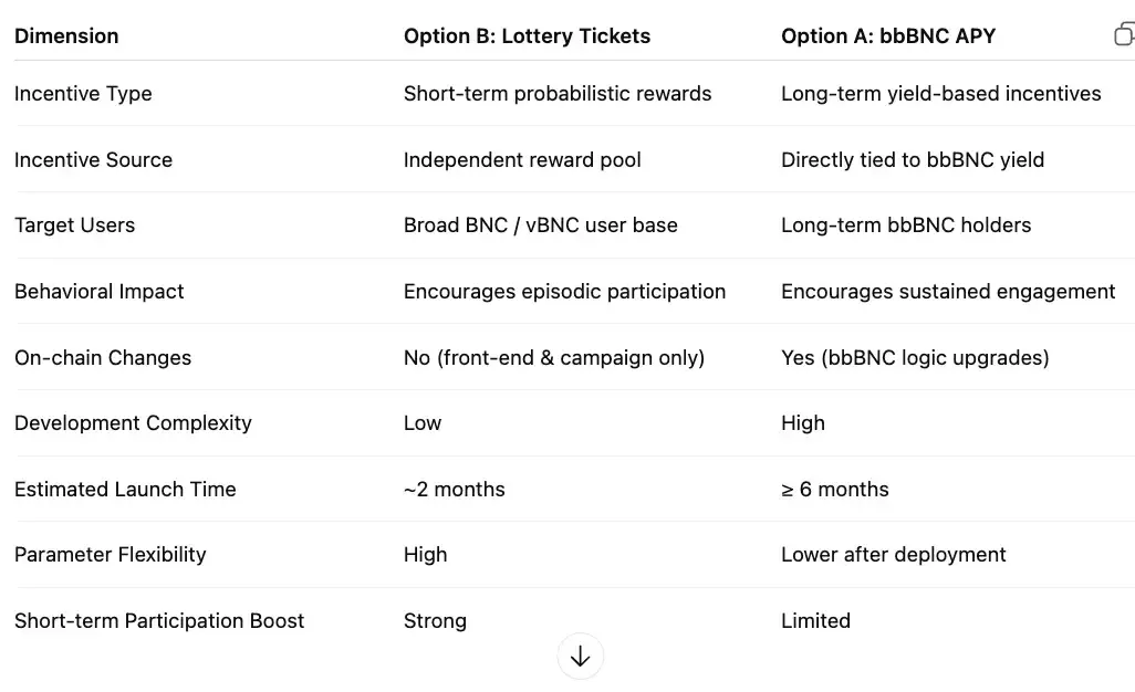 Opsi A menawarkan penyelarasan jangka panjang yang sangat terintegrasi antara partisipasi tata kelola dan hasil protokol, tetapi memerlukan waktu pengembangan yang signifikan dan perubahan on-chain.