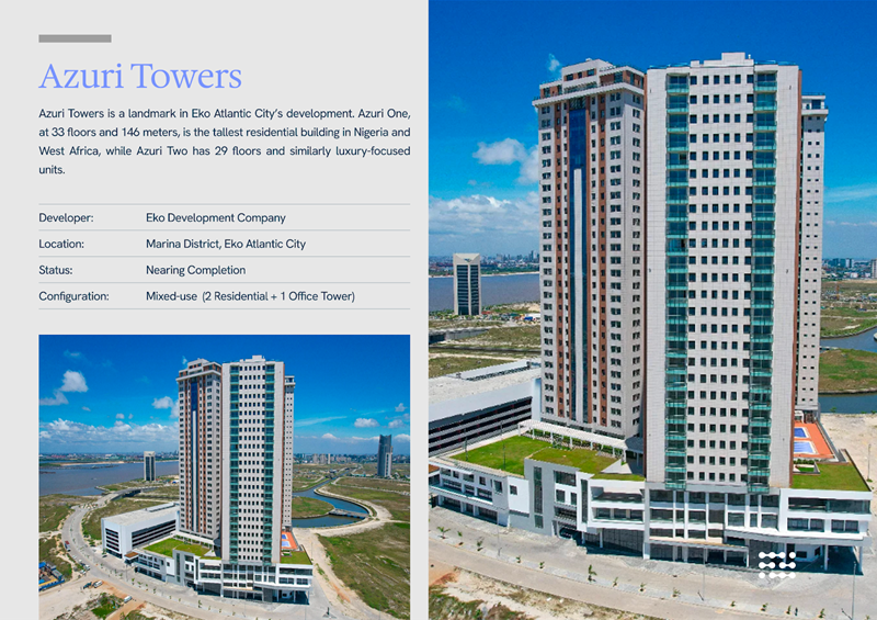 Terletak sekitar 500 meter dari pusat keuangan Lagos di Eko Atlantic, menyediakan penduduknya fasilitas urban premium, infrastruktur canggih, dan pemandangan panorama Samudra Atlantik.