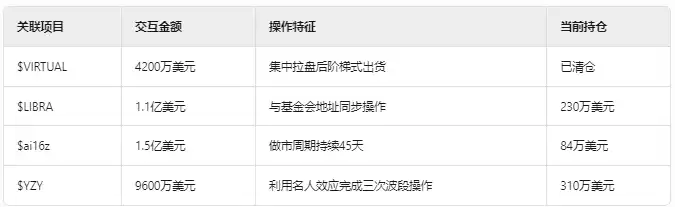 同時に $LIBRA と $VIRTUAL で活動を行っており、これらの2つの通貨も認められたスーパー強庄コインであり、$LIBRA が基金の裏での操作スキャンダルに深く関与していることは言うまでもなく(今ではあまり言及されていないが)。