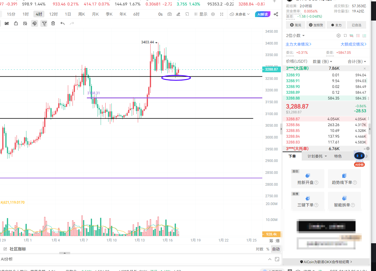 ETH:イーサリアムは現在のチャートから見ると、全体的な突破力はビットコインよりも弱く、3250付近で震荡中。下値は3230-3200付近で何度も反発確認。ビットコインがサポートを割らなければ、イーサリアムも上方の抵抗線3350-3380を再度試す動きに入り、抵抗線の切り替えを目指す。操作戦略は、下値での買いを中心に。