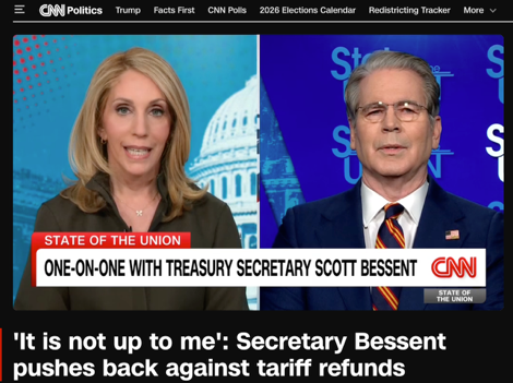 Another more pragmatic “evasion point”: Yellen described the refund as “not a key issue” on camera, which is actually pushing political and fiscal risks further back. Because once it is acknowledged that “refunds should happen,” three sharper questions will arise: who gets the refunds? how much (including interest)? where does the money come from? These cannot be simply dismissed with “waiting for the courts.” On that day, multiple media outlets quoted Yellen’s statement that “refunds will be handled by lower courts,” which is less a legal judgment and more a political posture—leaving the initiative to time under no firm commitment.