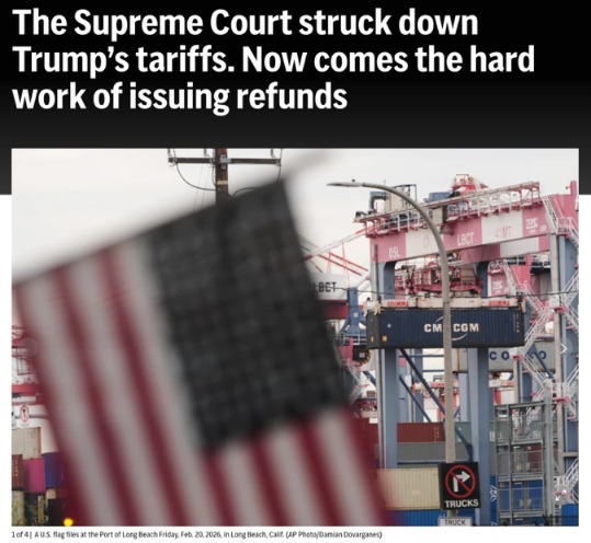△Associated Press reports that after the Supreme Court rejected Trump’s tariff policy, the arduous task of refunding taxes begins