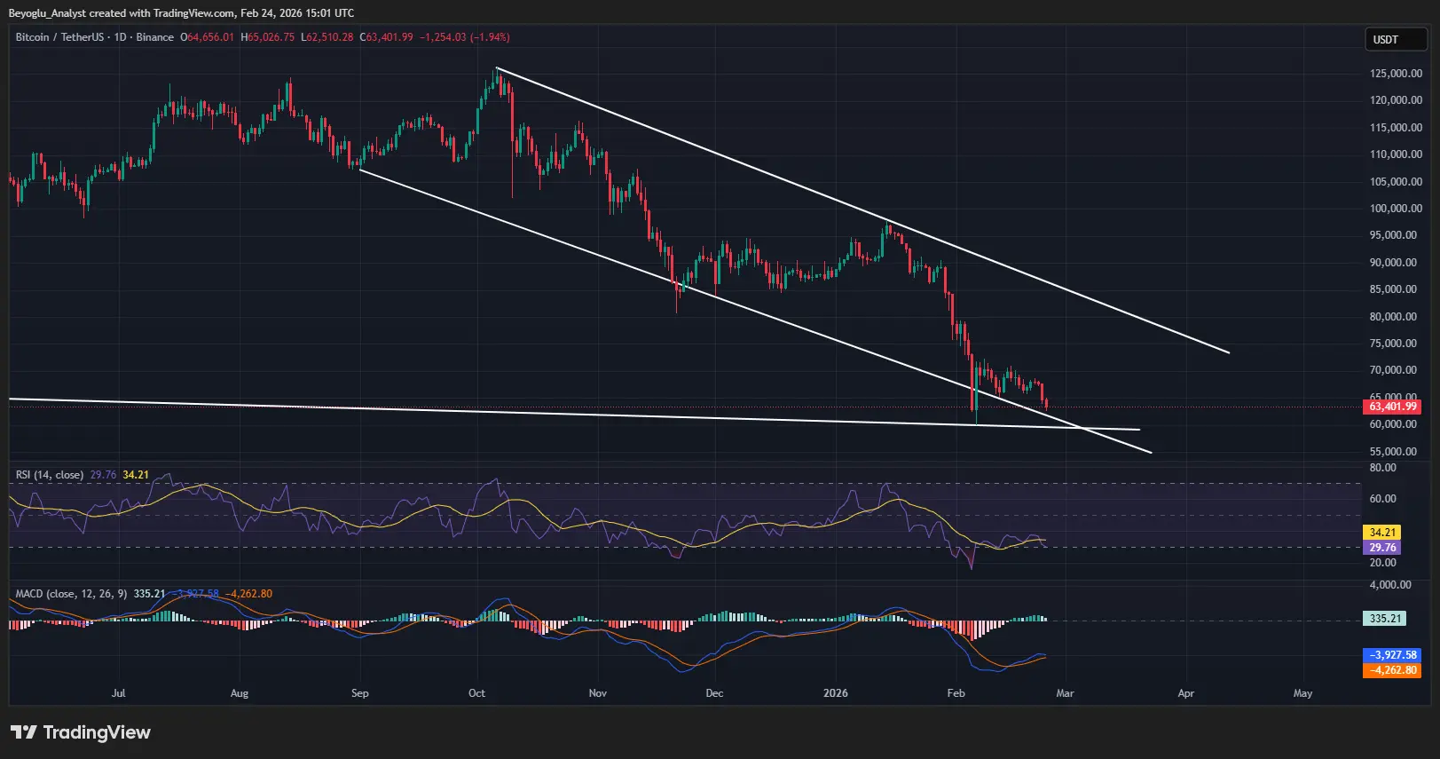 Bitcoin price faced strong decline last week from $72,000 resistance point and made nearly 20% decline from the resistance point and continuously aiming downward. At the time of writing this on Tuesday 25 Feb $BTC is trading near $63,000.