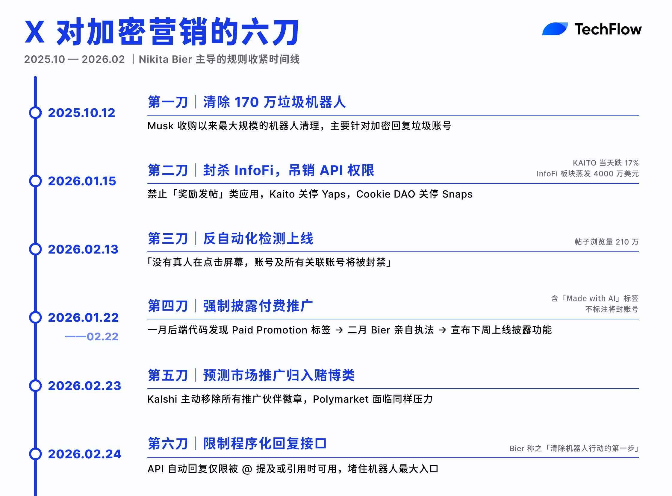 With these six cuts—covering bots, incentive mechanisms, automation tools, covert ads, category-specific promotions, and API reply restrictions—X has progressively tightened control over crypto content.