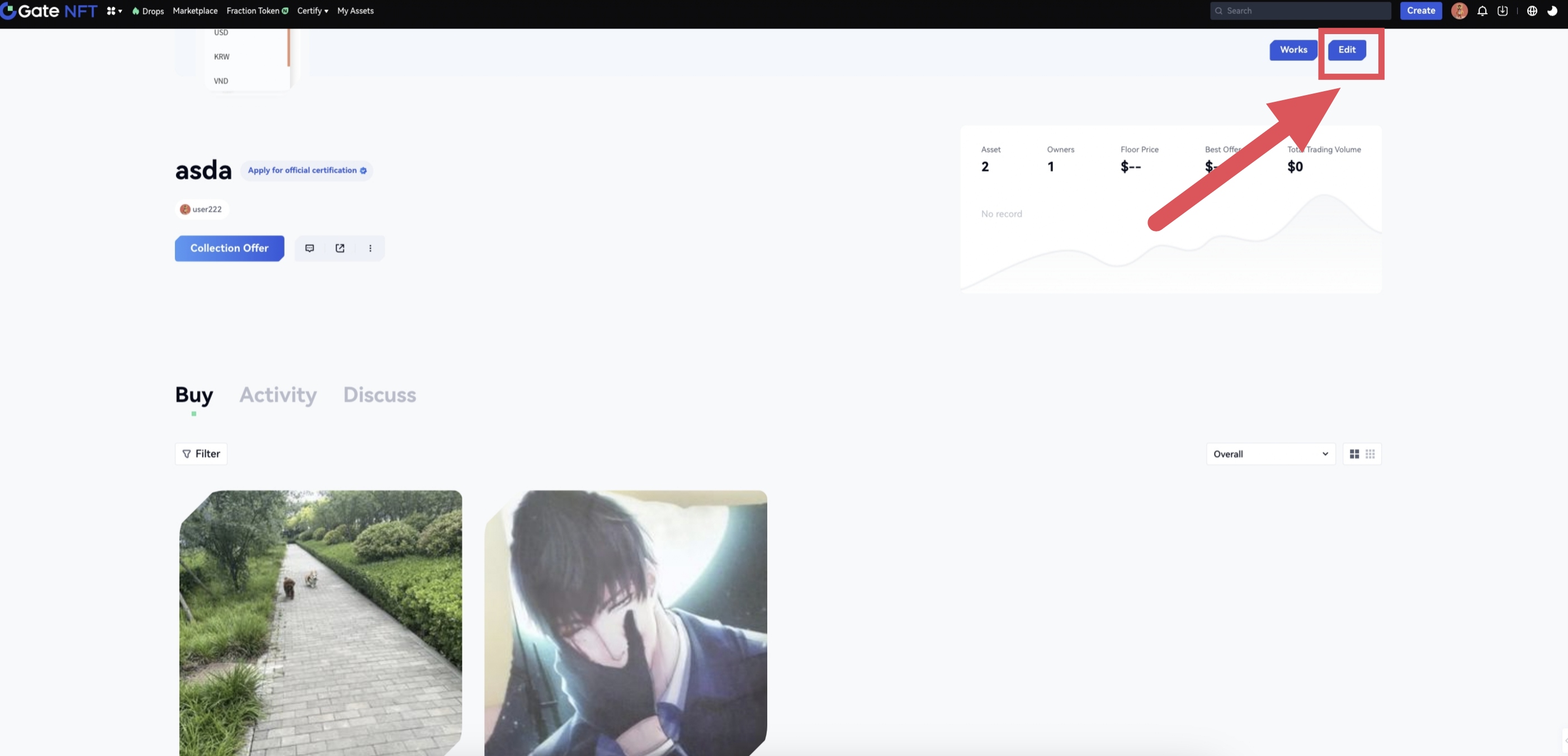 Se precisar editar informações de qualquer uma de suas coleções de NFTs existentes, clique no cartão da coleção para acessar sua página de detalhes. Em seguida, clique no botão “Editar” para acessar a página de edição da coleção, onde será possível editar e atualizar o conteúdo relevante.