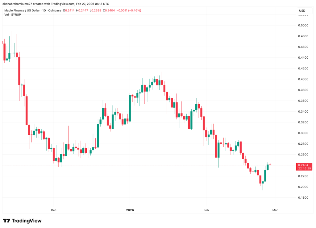 Quando os investidores procuram respostas para o motivo da queda do mercado cripto, analisar os gráficos de tokens como o Maple Finance fornece insights valiosos. A moeda está atualmente a passar por uma forte baixa. Até as previsões de preço não são positivas, muitas delas prevendo uma queda para $0,1804. Se isso acontecer, o Maple Finance poderá registar uma perda de quase 26%.