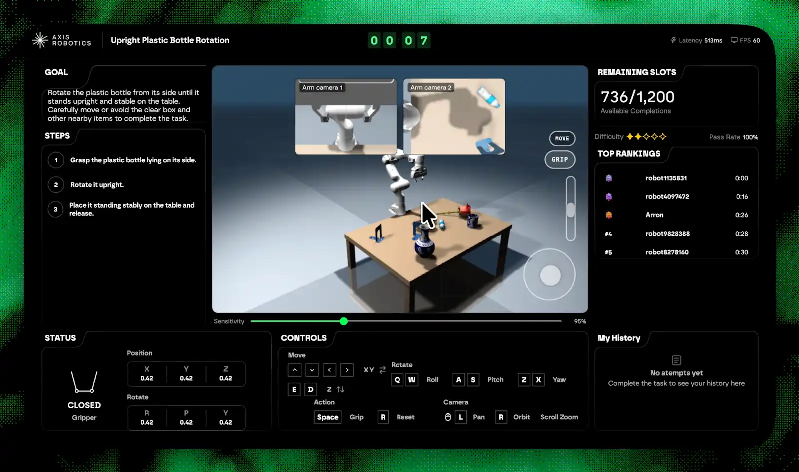 A Axis trouxe ambientes de simulação complexos, antes acessíveis apenas a laboratórios especializados, para navegadores e dispositivos móveis. Os utilizadores podem controlar em tempo real robôs e braços mecânicos, gerando trajetórias de dados valiosos como se jogassem um jogo. Sem hardware pesado nem barreiras técnicas — a produção de dados passa a ser “sempre, onde quer que seja, aberta a todos”.
