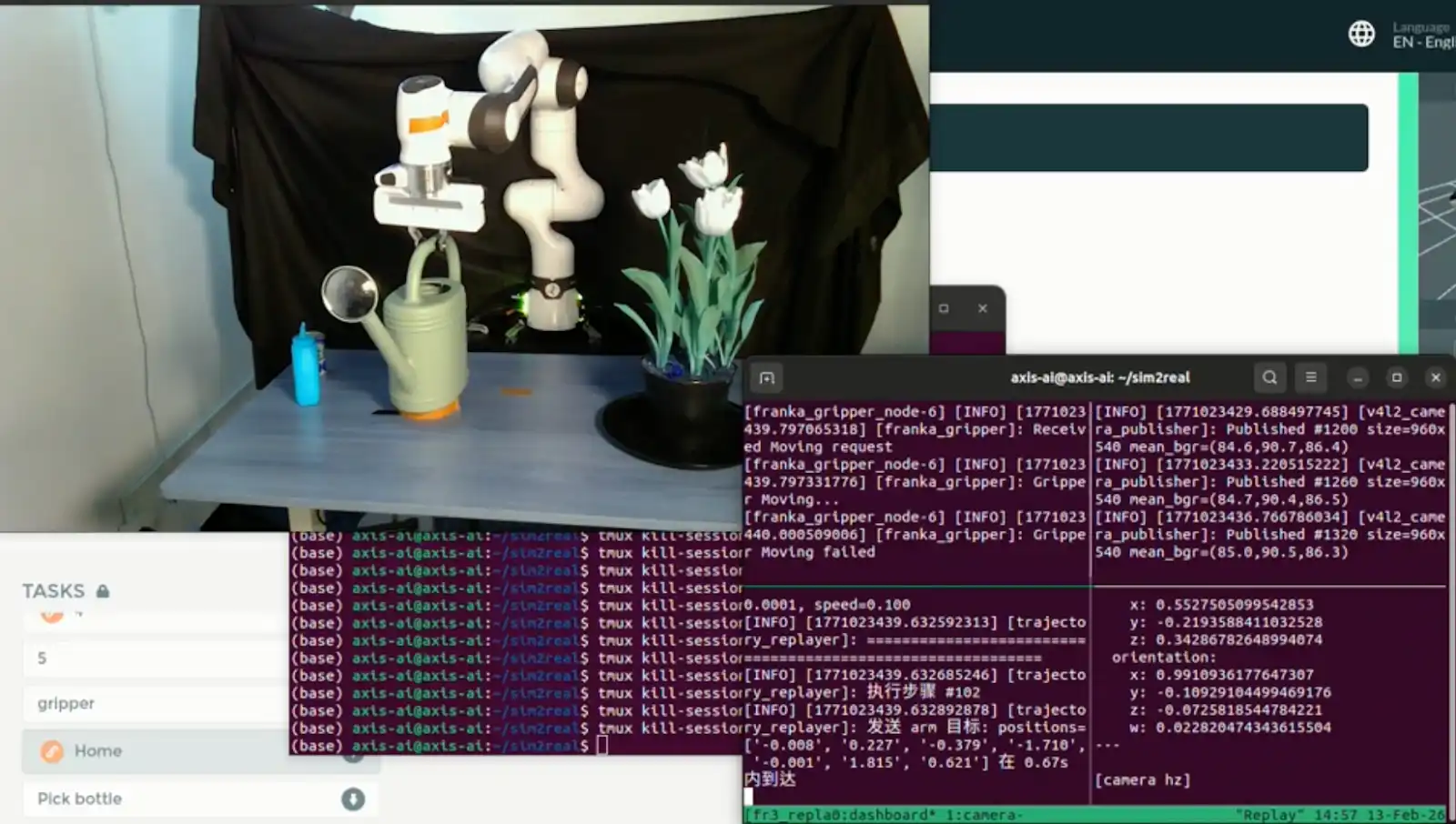 Na atividade “Little Prince’s Rose” (A Rosa do Pequeno Príncipe), a equipa recolheu em apenas três dias mais de 10.000 trajetórias de alta qualidade. Após reforço com replays e suavização de dados, essas trajetórias foram diretamente utilizadas no treino de estratégias, e finalmente implantadas na braçadeira Franka para realizar uma tarefa de inteligência incorporada — regar plantas autonomamente.