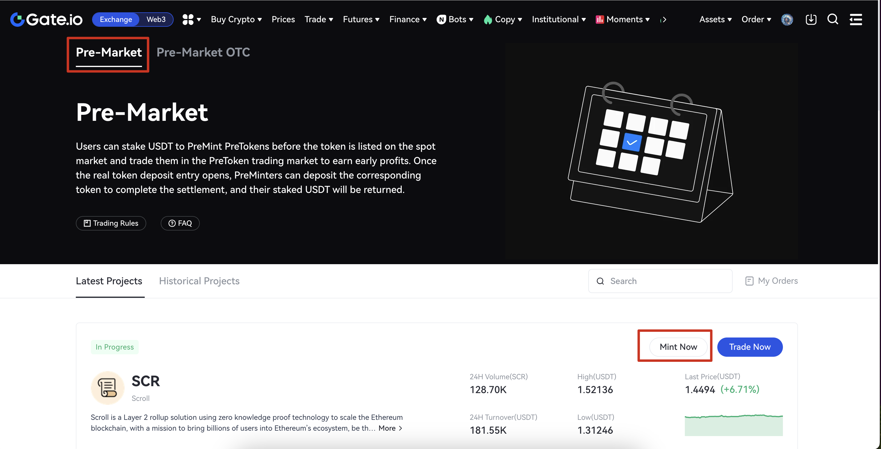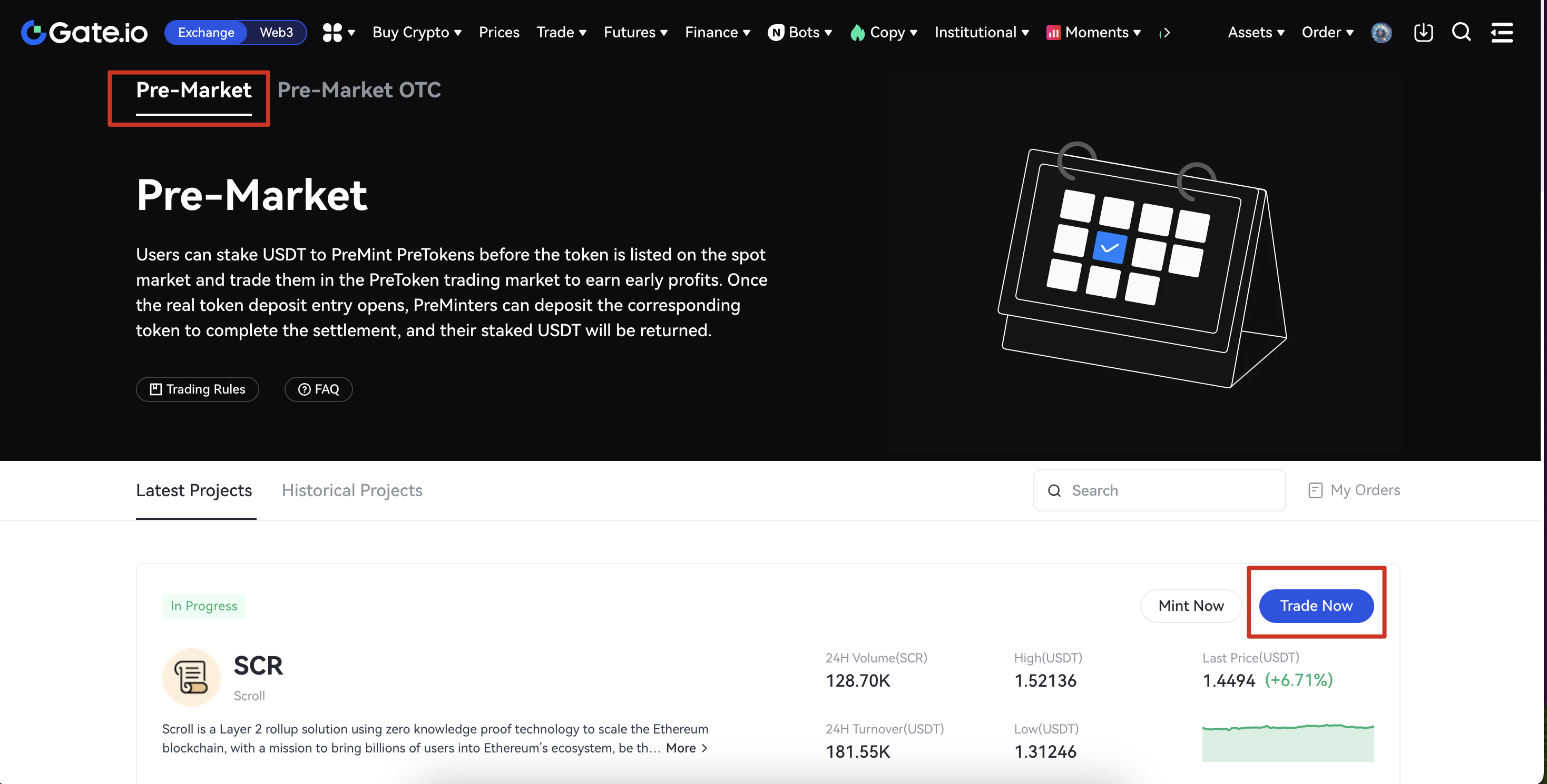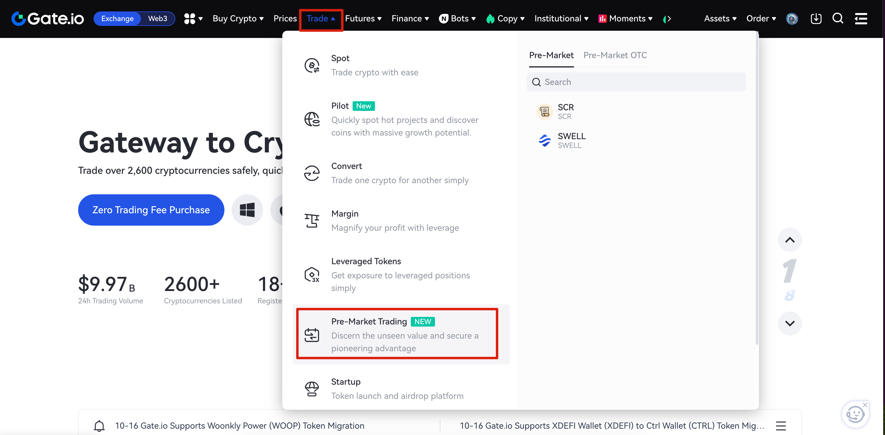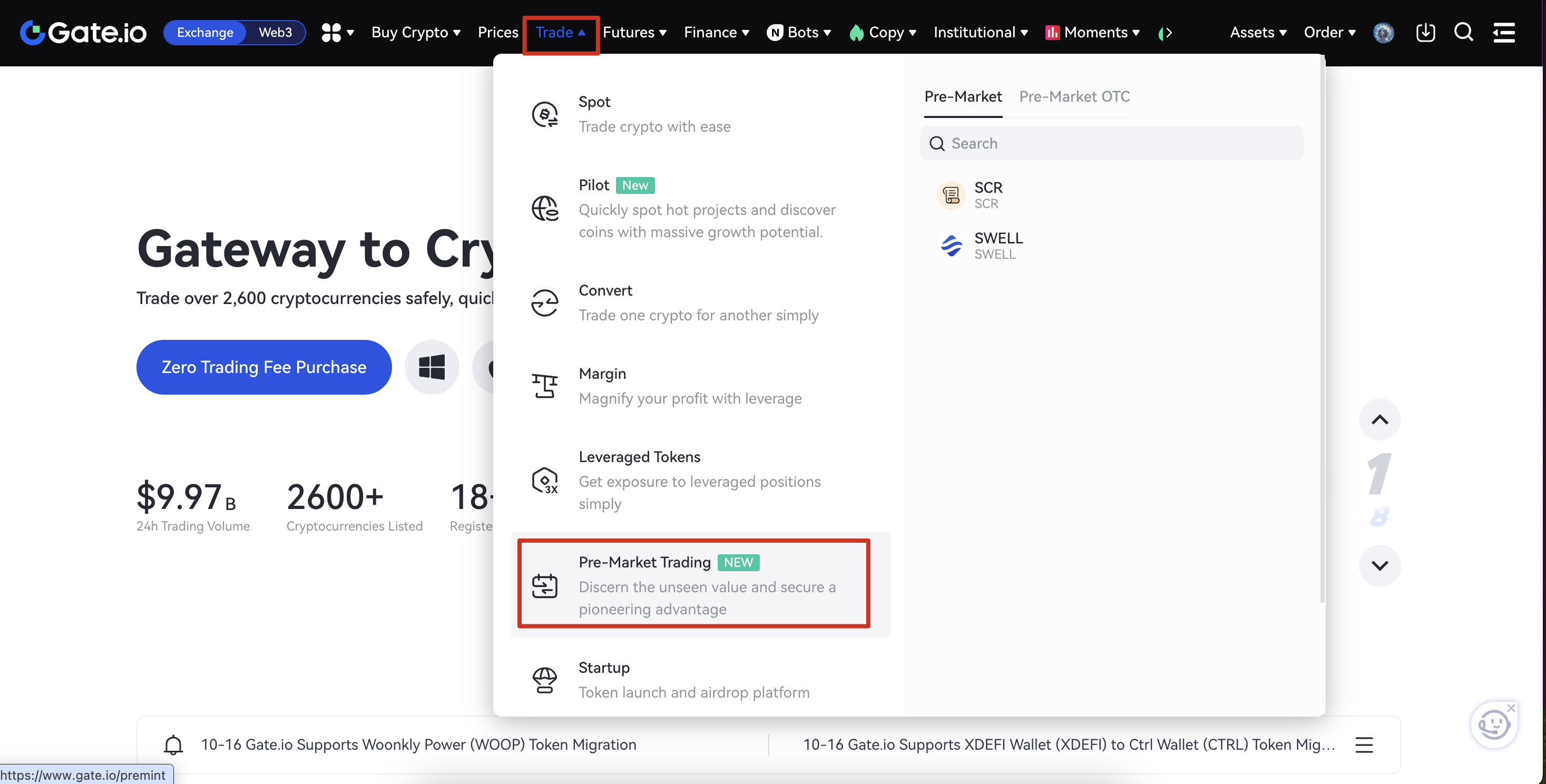 Step1: Visit the Gate Website and click Pre-Market Trading