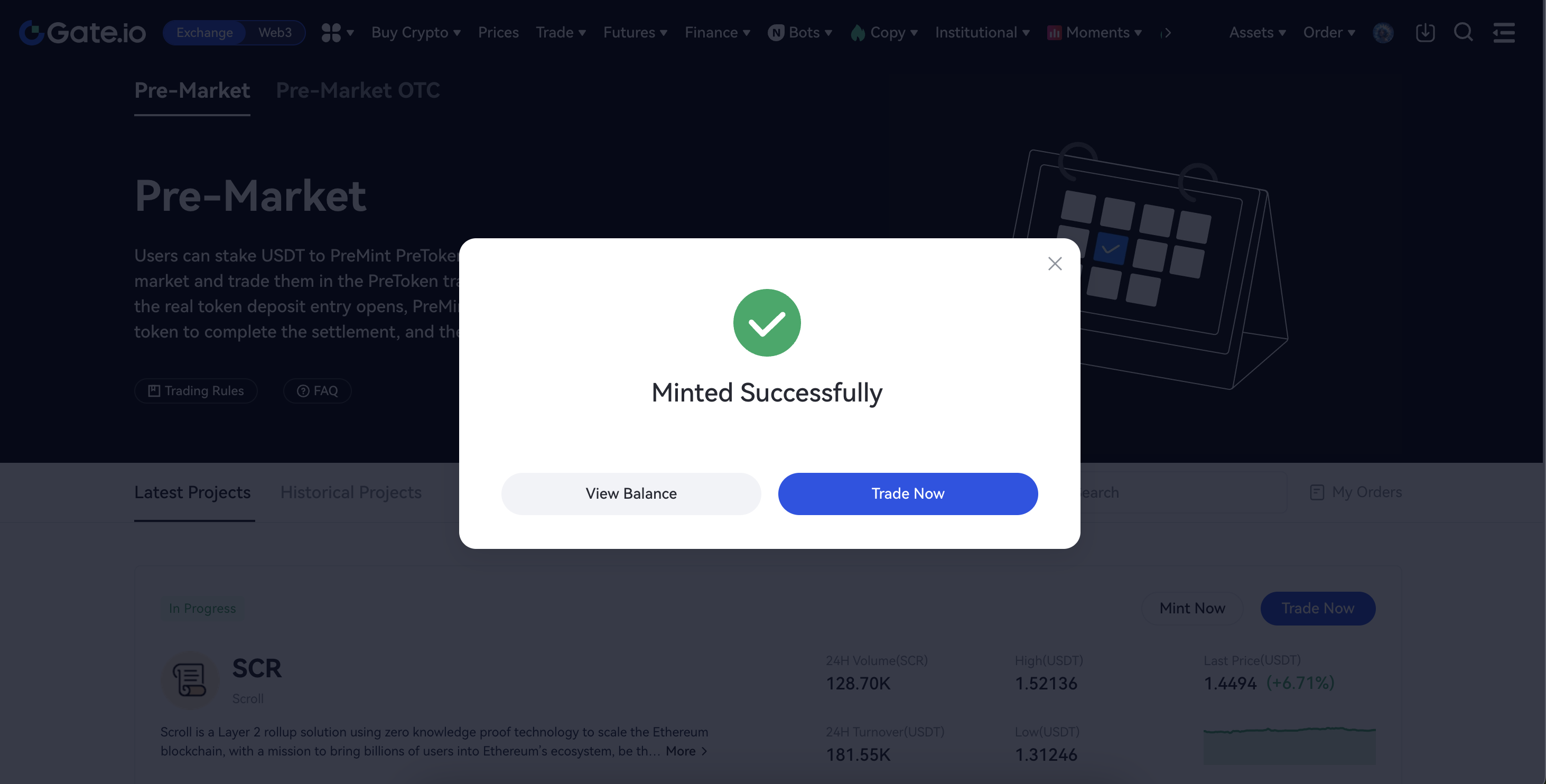 Choose the PreToken you want to mint in Pre-Market and click "Mint Now".