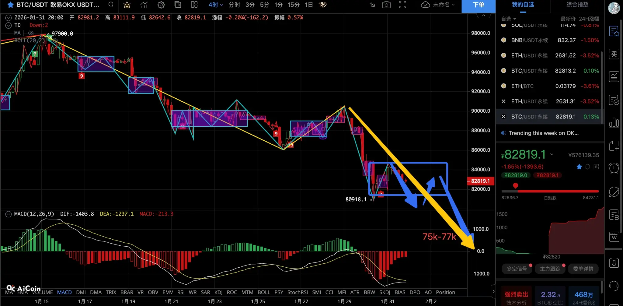 Análise de profundidade do BTC: isto não é uma correção, é um "alívio" numa tendência de queda, 75-77K é a posição alvo