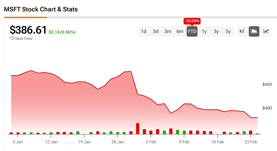 Акции Microsoft выросли на 0,56% во вторник, но за год снизились на 20,09%. За последние 12 месяцев акции также упали на 3,38%.