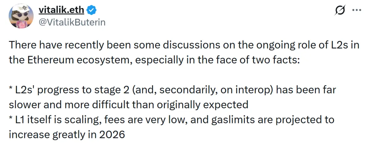 Ethereum не собирается отказываться от L2, а переосмыслить роли — L1 возвращается к роли самой безопасной расчетной платформы, L2 фокусируется на дифференциации и профессионализации, чтобы стратегический акцент снова сосредоточился на основной сети.