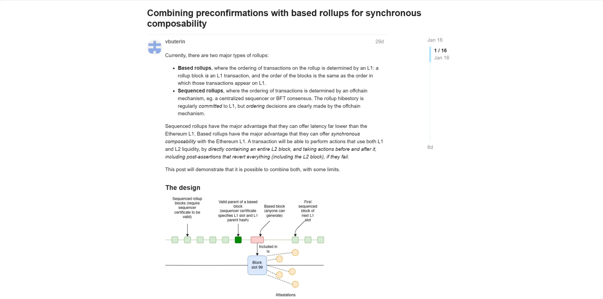 Интересно, что в ответ на размышления Виталика о L2, был предложен январский проект — «Комбинирование предподтверждений с Based Rollups для синхронной композиции» — идея не просто о внедрении Based Rollup, а о гибридной структуре: