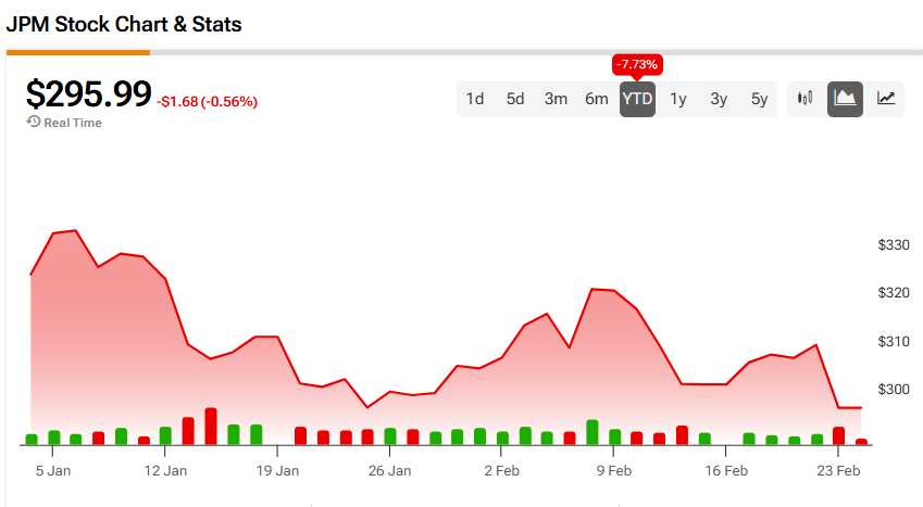 JPMorgan Chase JPM -0.13% ▼ акции снова снизились во вторник, несмотря на опровержение со стороны генерального директора Джейми Димона по поводу опасений, связанных с искусственным интеллектом (ИИ). Димон заявил The Wall Street Journal, что реакция на статью Citrini Research, опубликованную вчера, была преувеличенной.