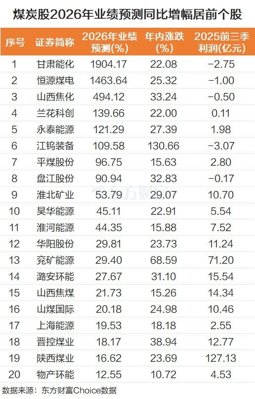 Что касается отдельных акций, то аналитики в целом позитивно оценивают прогнозы по прибыли угольных компаний на 2026 год. Организации прогнозируют, что прибыль Gansu Energy и Hengyuan Coal Electric в 2026 году увеличится более чем в 10 раз, а прибыль Shanxi Coking, Lanhua Sci-Tech, Yantai Energy, Jiang tungsten Equipment ожидается удвоенной.