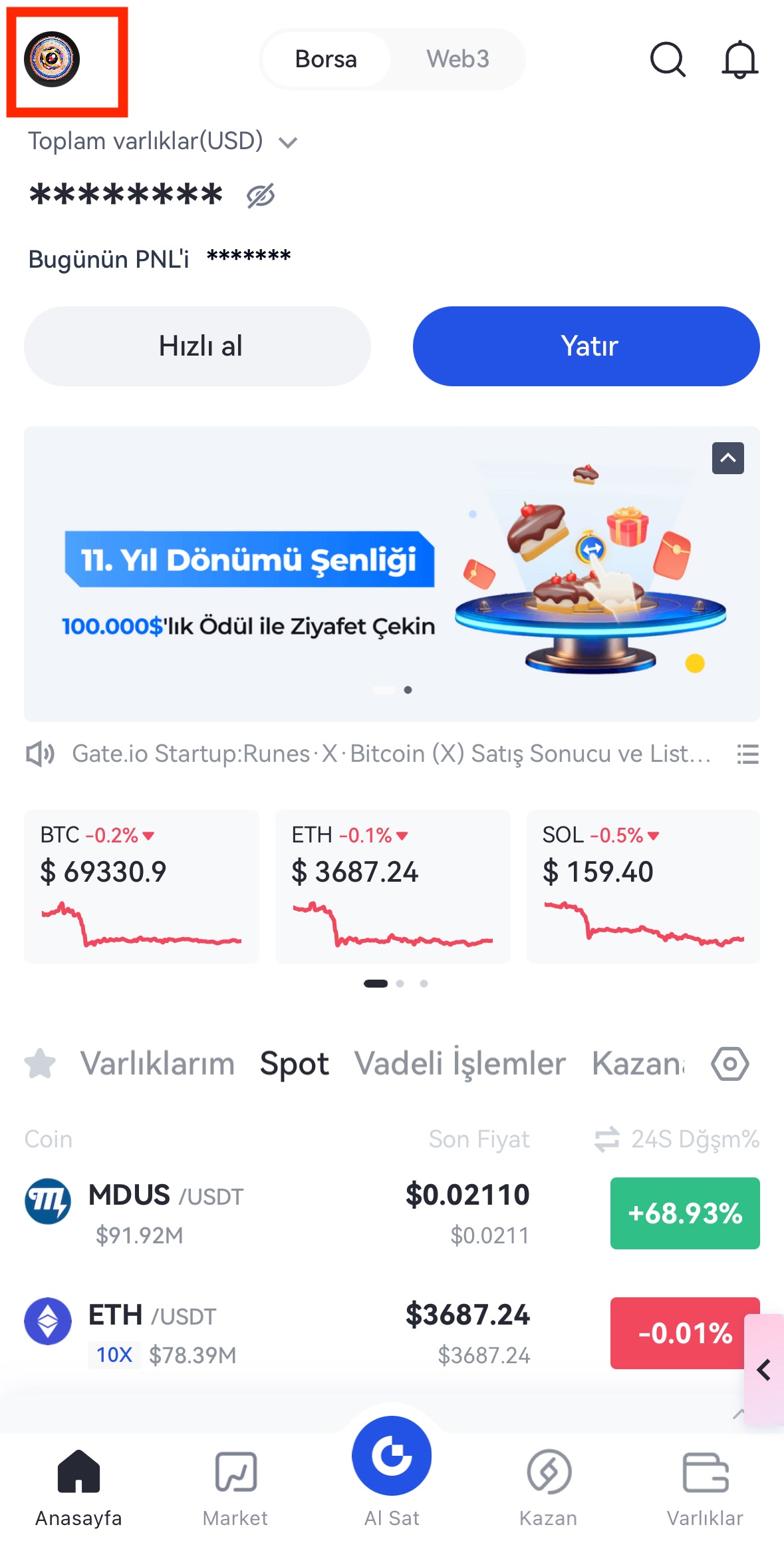 Adım 1: Gate uygulamasını açın ve hesabınıza giriş yapın. Ön sayfadaki "Daha Fazla" seçeneğine tıklayın.