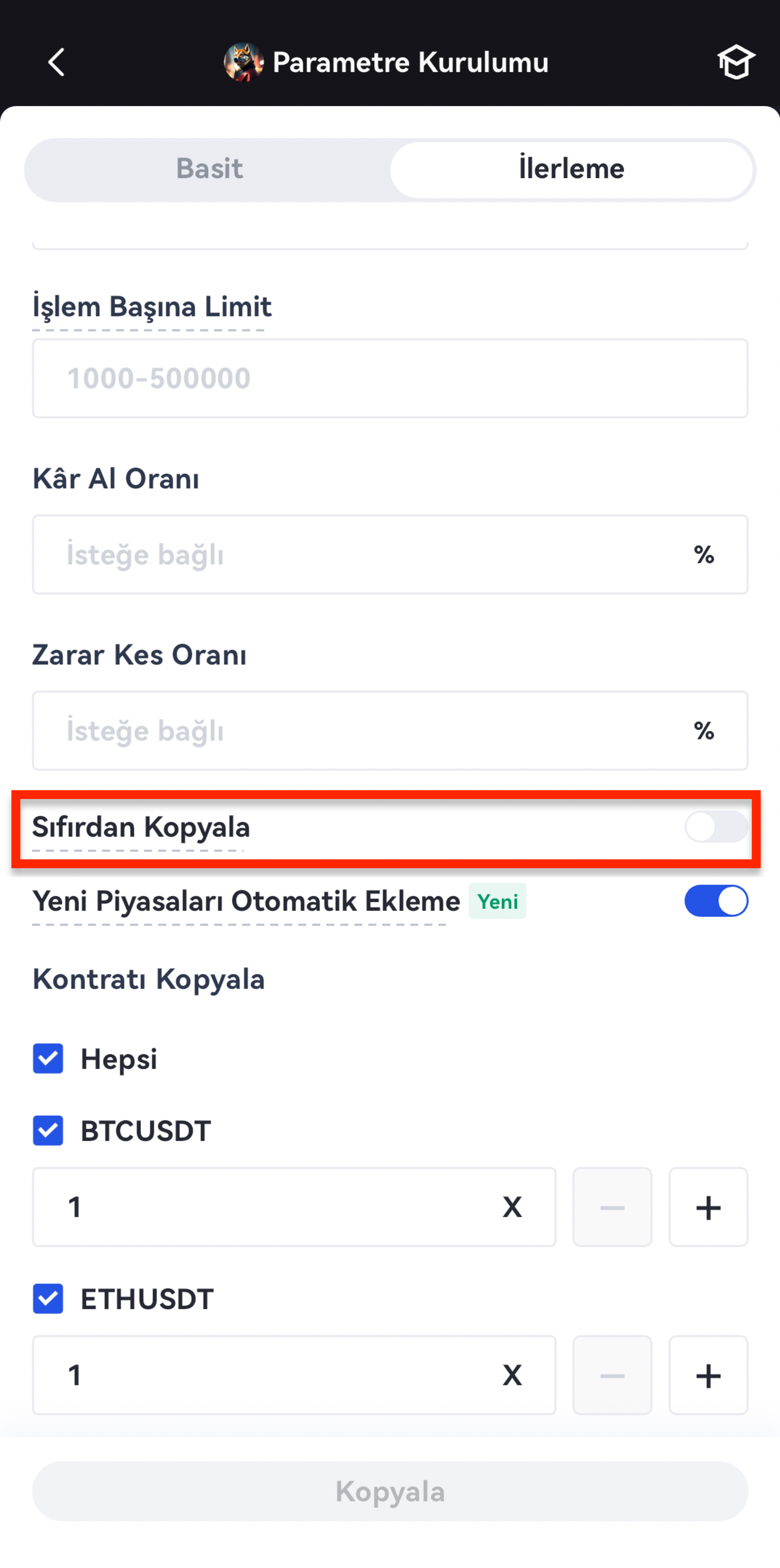 4.2.1. Kopyalama modunu kontrol edin: Gelişmiş kopyalama modunda olup olmadığınızı kontrol edin. Öncelikle “Strath’tan Kopyala”yı etkinleştirip etkinleştirmediğimizi kontrol etmemiz gerekiyor. Seçeneği seçtikten sonra yatırımcıyı pozisyon açar açmaz kopyalayabiliriz.