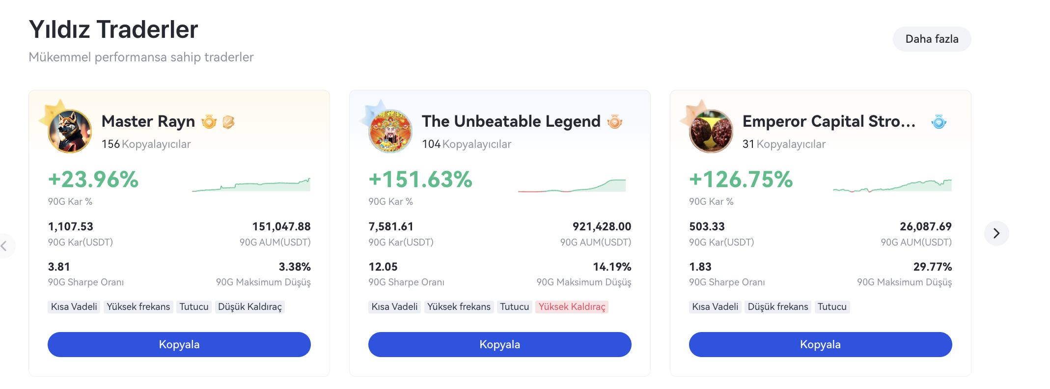 Copy Trading’in ana sayfasındaki Gate öneri listesindeki yatırımcılar, sistem tarafından belirli bir referans değerine sahip objektif bir algoritma yoluyla türetilir ve kopyalayıcılar kopyalanacak en iyi Lead Trader’ı seçebilir.