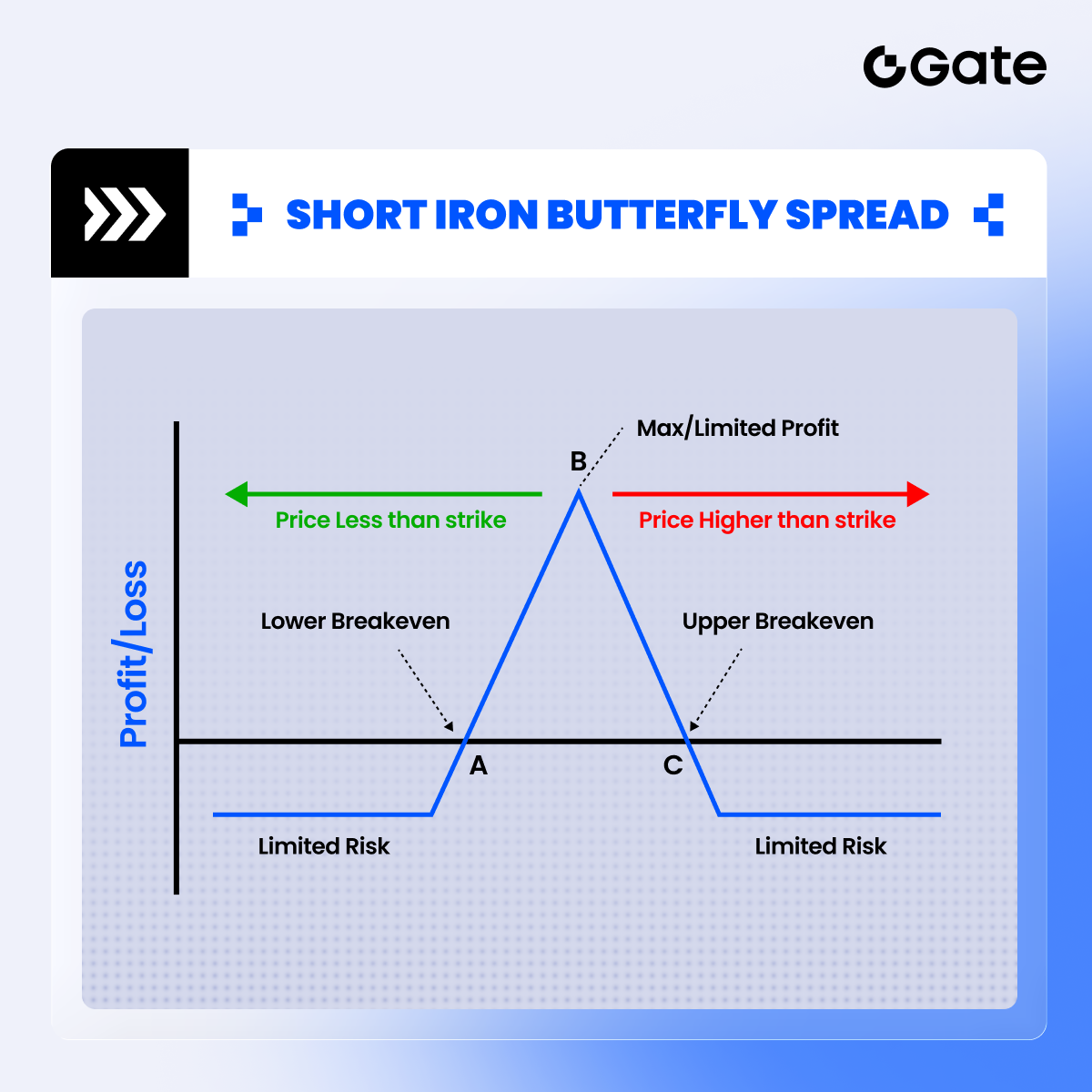 In options trading, the Butterfly Spread is a typical neutral strategy, suitable when expecting the underlying asset to expire near a specific price, i.e., minimal price movement or low volatility. This strategy features: