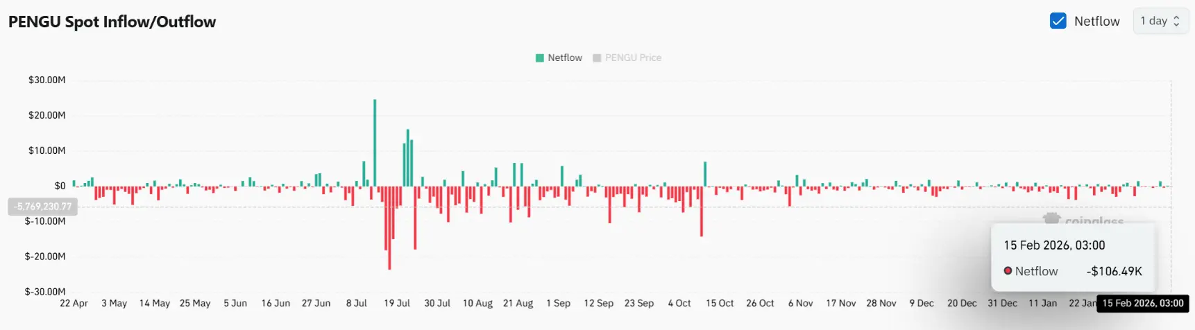 Netflow data at the time of writing shows –$106.49K, indicating more tokens are being withdrawn from exchanges than deposited.