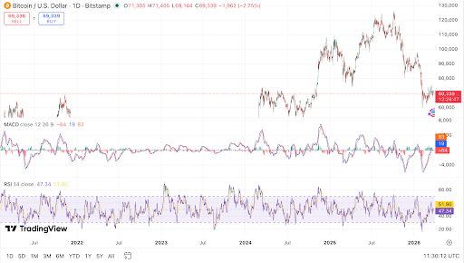 Bitcoin remains in a corrective phase after reaching highs near $120,000. The price later dropped to around $60,000, marking a near 50% decline.
