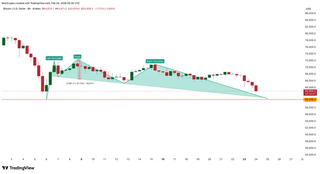 On-chain cost analysis shows that Bitcoin’s realized price is currently around $54,700. This price reflects the average purchase cost of all circulating Bitcoins and often provides strong support. Therefore, if $60,000 gives way, the next key buffer zone is around $54,800. This aligns with the theoretical downside target of the head-and-shoulders pattern, which is approximately $54,800.