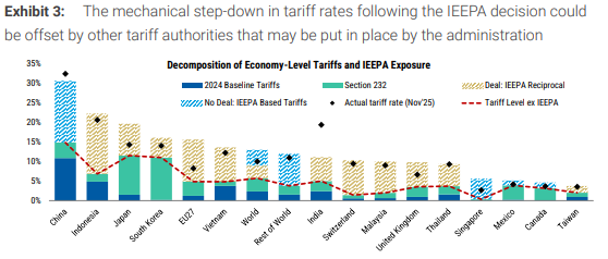 Secondly, on February 20, the U.S. Supreme Court ruled that Trump’s global tariffs imposed under the International Emergency Economic Powers Act (IEEPA) were unconstitutional. In response, the U.S. invoked Section 122 of the Trade Act of 1974 to reimpose a 10% tariff globally (effective February 24, with a 15% tariff timetable yet to be determined). However, this policy can only last for 150 days, and whether new tariffs will be introduced or whether they will gain Congressional support remains highly uncertain.