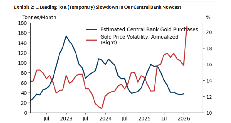 At the same time, some micro changes have appeared in the fundamentals of gold. Russia sold 300,000 ounces of gold (9.33 tons) in January, and internal Kremlin memos indicate Russia is considering returning to the U.S. dollar settlement system as part of ending the Russia-Ukraine conflict agreement. Additionally, global central bank gold purchases plummeted to 22 tons by December 2025, well below the 52 tons average over the past 12 months.