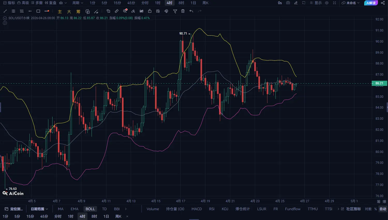 First, the conclusion: SOL has entered a high-level consolidation phase after a continuous rebound, showing signs of weakening; short-term momentum is insufficient, and the intraday trend is more inclined toward a “consolidation and pullback structure,” but it still remains within the range and is not a one-sided market.