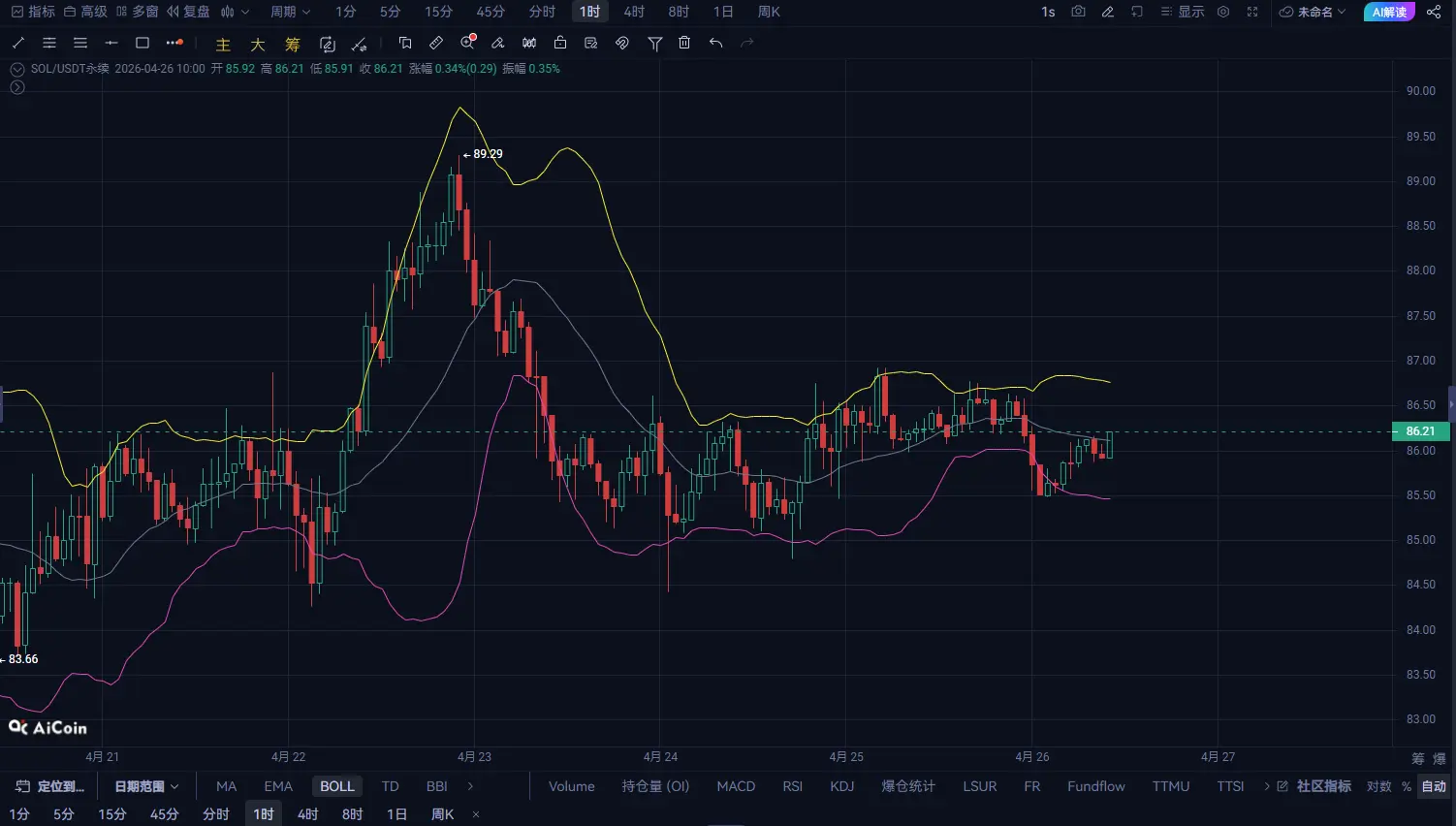 SOL shows signs of losing upward momentum! Clear resistance above 86, short-term pullback risk is being released.