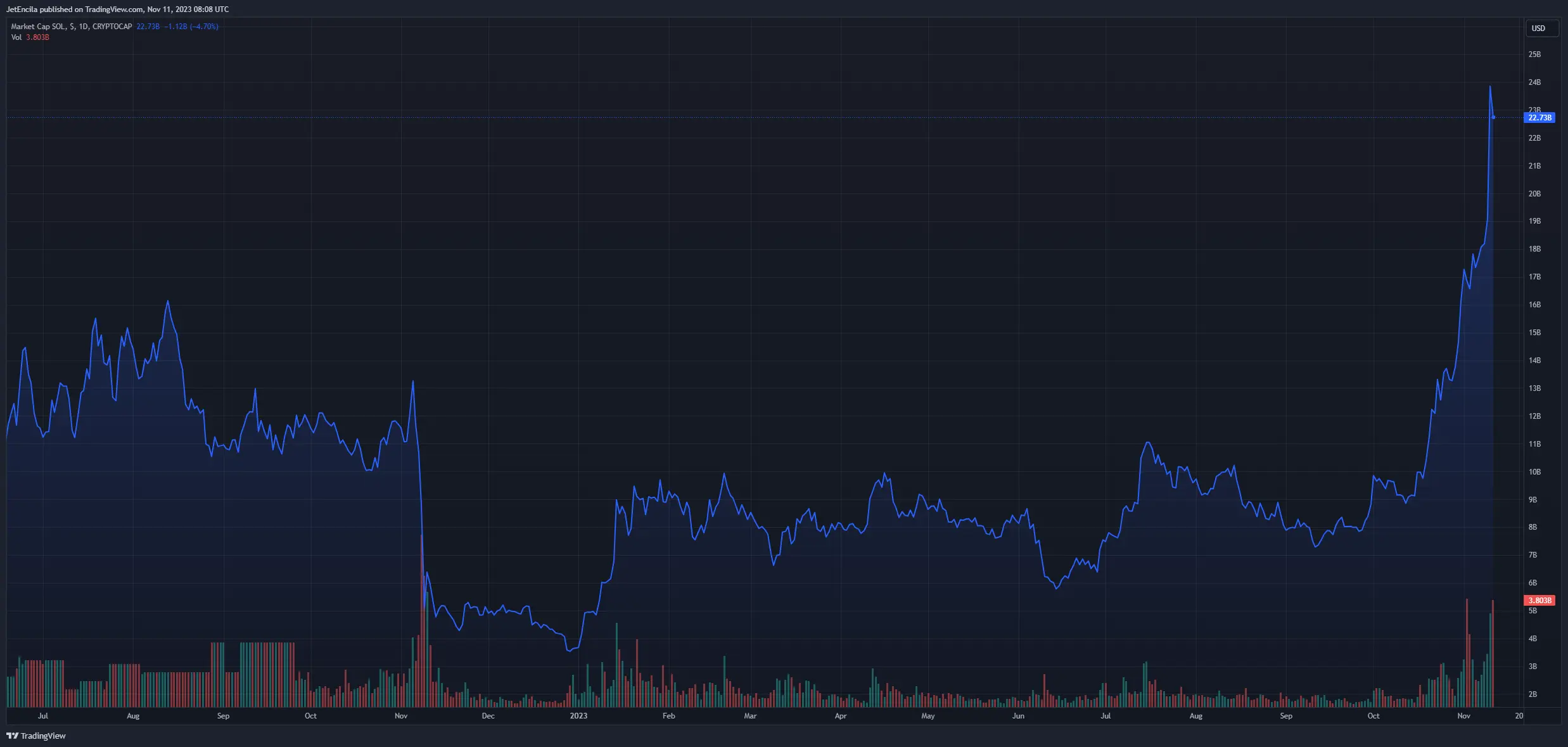 SOL market cap at $22.7 billion on the weekend chart: TradingView.com