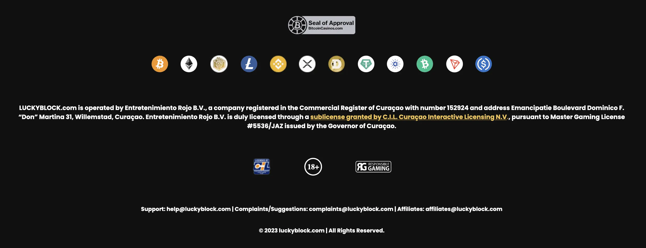Lucky Block is a safe online casino; it holds a Curaçao e-gaming license. Moreover, cryptocurrency payments are made from a private wallet, so your sensitive data is protected. There is no KYC process, allowing Canadians to gamble anonymously. Lucky Block is offering a 200% matched deposit bonus for new players, plus 50 free spins.