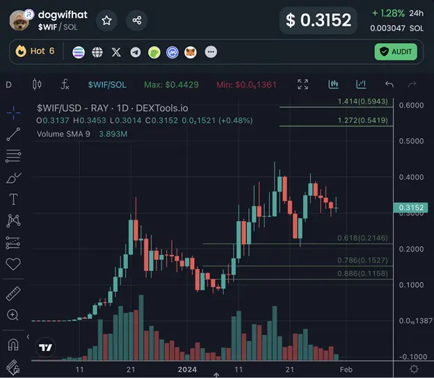 Unfortunately, $WIF stalled around $0.4 and is now trading at $0.315.