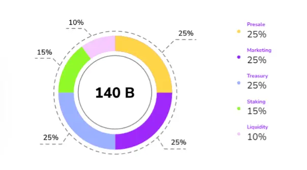 Dogecoin20 is exploring new directions with an emphasis on sustainable token economics. The project allocates its token supply as follows: 25% for the presale, 25% dedicated to marketing efforts, 25% reserved for the project’s treasury, 15% allocated for staking rewards, and the remaining 10% to ensure liquidity on exchanges.