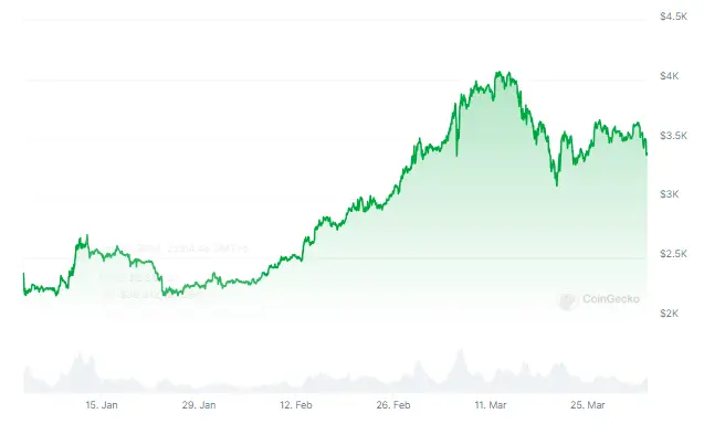Market indicators reflect Ethereum’s current state, with nearly 5% decline in the last 24 hours, trading at $3,380. Despite this dip, Ethereum briefly surpassed $3,500 over the weekend, showcasing resilience amidst market fluctuations.