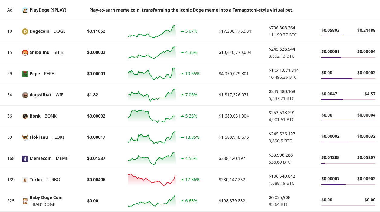 Overall, it’s a good day for meme coins.