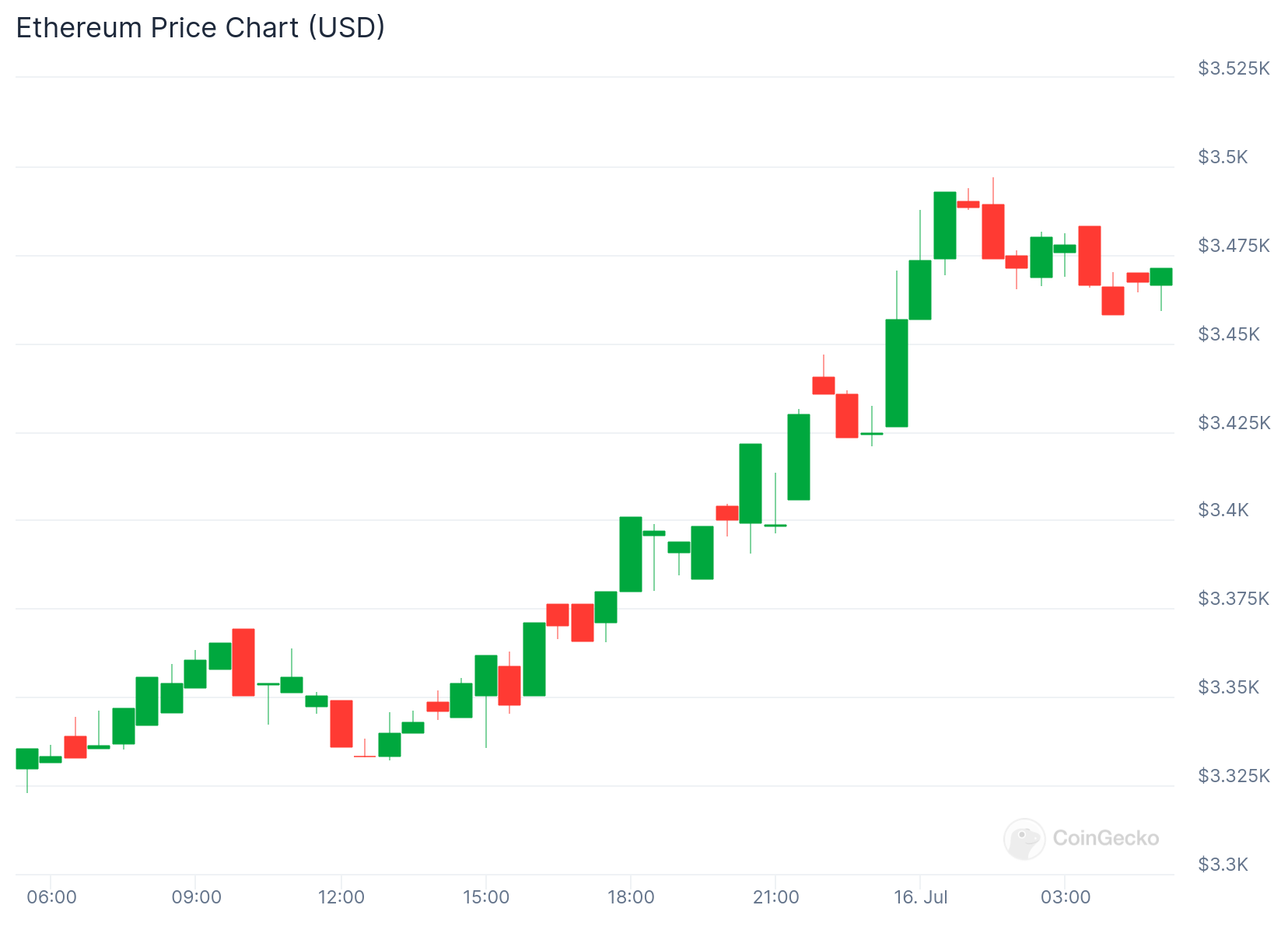 Currently, Ethereum is trading above the 50-day exponential moving average (EMA) at $3,439, with a rising relative strength index (RSI) positioned at 55, both of which are positive indicators of ongoing bullish momentum.