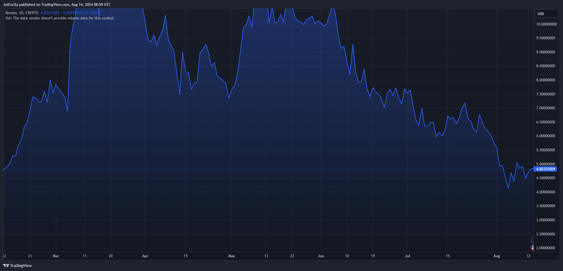 In a market with divergent projections, the Render token warms up to analysts and crypto believers. At a present value of $4.80, cryptocurrency researcher Crypto Patel has predicted Render is going to skyrocket over 990% to as high as $50. This could happen despite the token having plunged 75% from its peak.