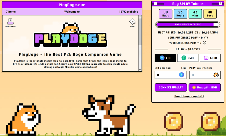 PlayDoge (PLAY) is the native token of the PlayDoge P2E game. It evokes nostalgia with its 8-bit aesthetic, and gameplay heavily inspired by Tamagotchi devices. Everything from taking care of your doge pet, playing with it, or completing minigames is connected to PLAY.