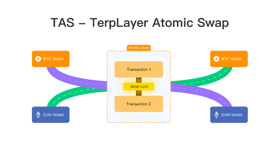 At the heart of TerpLayer is its TerpLayer Atomic Swap (TAS) technology, enabling seamless exchanges between Bitcoin and USDT on EVM-compatible chains. This cross-chain solution enhances liquidity by facilitating secure, efficient trades across networks without compromising speed or safety.