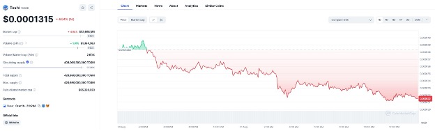 BYTE soared to $0.055486, a significant rise from its drop to $0.054916 on August 19th, but it’s now experiencing an 8.71% loss in the last 24 hours. Similarly, TOSHI saw a 4.94% decrease, while MOCHI lost 13.19%.